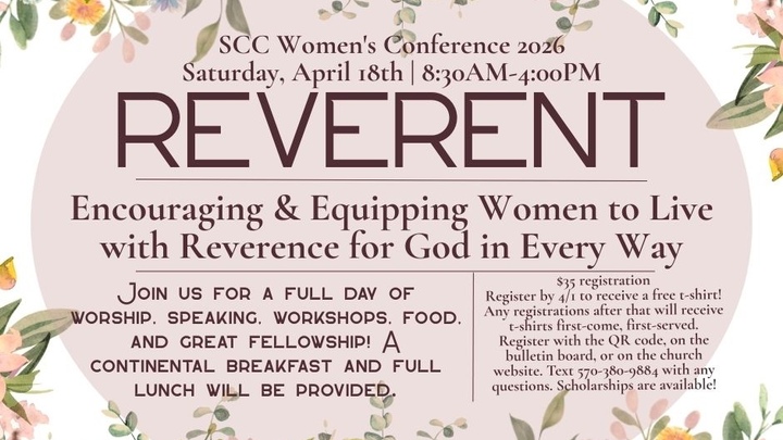 Join us for our annual women’s ministry conference. This year, with the theme of Reverent, we will be diving into the idea of living in awe of God in every way! It will be a full day with continental breakfast and lunch included, breakout workshops, worship, and more!